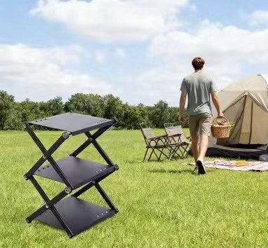 3-tier folding storage rack.Portable folding display shelf.Versatile 3-Tier Foldable Display Shelf