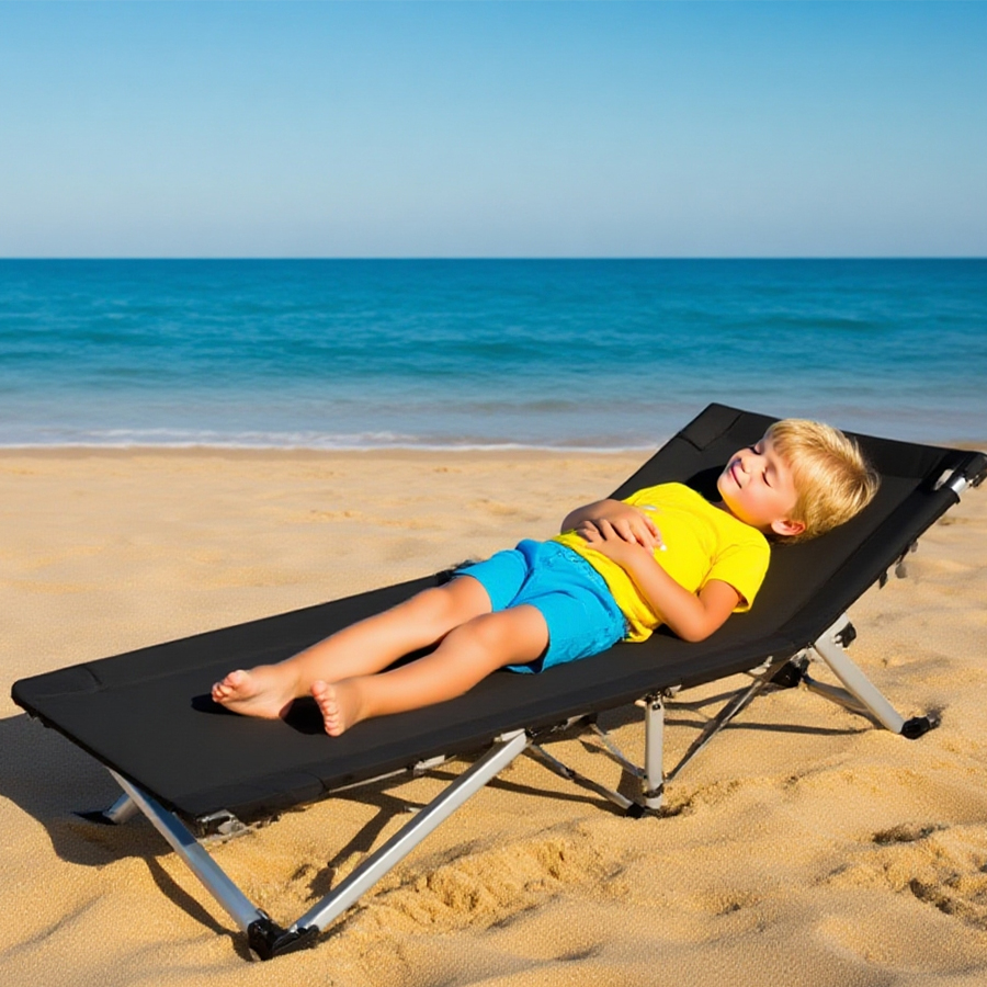 Made with a sturdy aluminum frame and durable fabric, this cot is both lightweight and incredibly strong. It can be set up in minutes and folds down compactly to fit into its included carrying bag. This makes it ideal for camping, beach trips, backyard lounging, or as a convenient extra bed for guests.