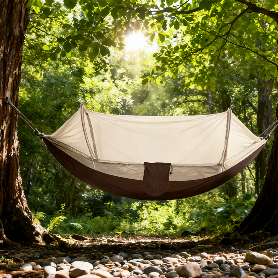 Sleep soundly and bug-free on your next outdoor adventure with the Single Camping Hammock with Integrated Mosquito Net. This essential piece of gear combines the unmatched relaxation of a hammock with the critical protection of a fully enclosed net, ensuring mosquitoes, flies, and other pests stay out.