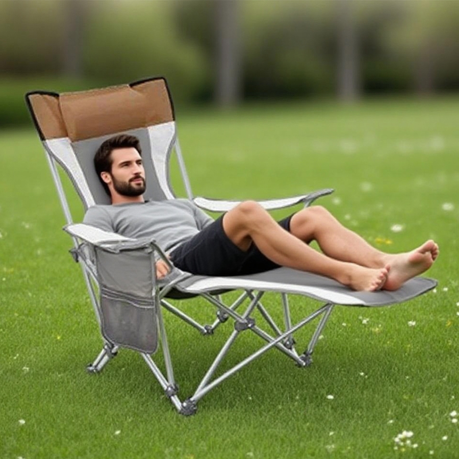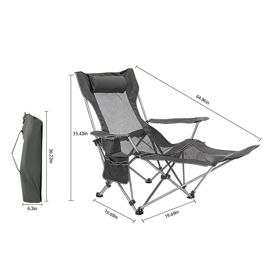 折りたたみ式リクライニングキャンプチェア(フットレスト付き) - ポータブルラウンジチェア