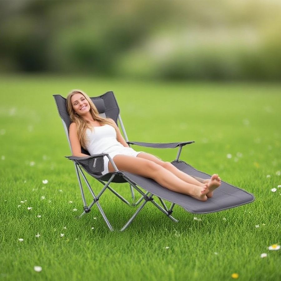 - 簡単なセットアップ: シンプルな折りたたみ設計により、数秒でセットアップでき、手間をかけずに座ってリラックスできます。