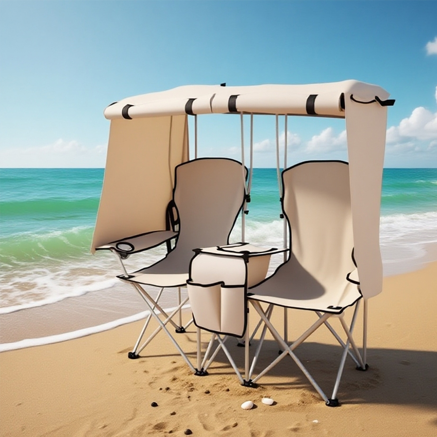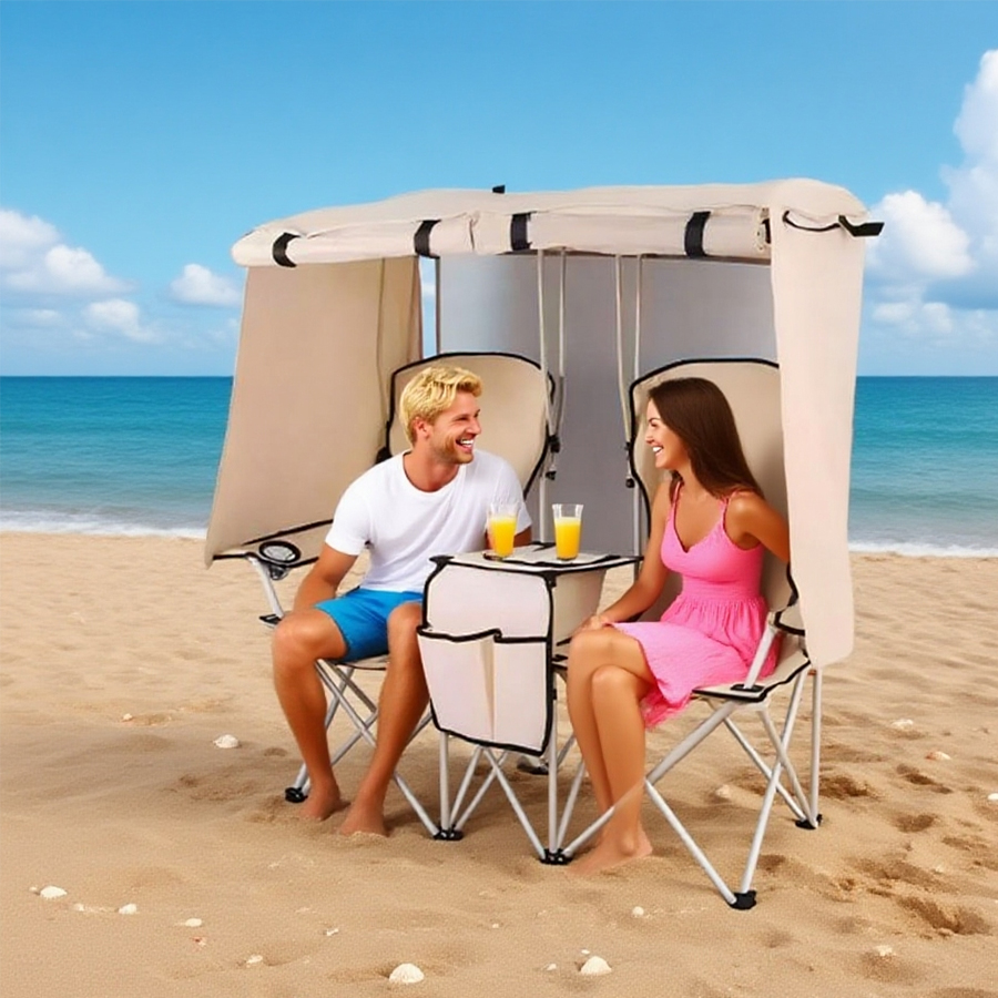 - Double folding camping chair with canopy