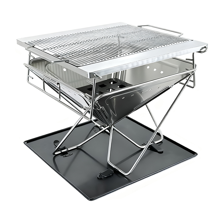 Fabricado com materiais de alta qualidade. aço inoxidável premiumEsta churrasqueira foi projetada para resistir à ferrugem, suportar calor extremo e durar anos de uso ao ar livre. A estrutura robusta, base em X reforçada Garante estabilidade em diversos terrenos. O design inclui uma base removível. bandeja de cinzas/leito de carvão Para uma gestão eficiente do combustível e fácil limpeza. Fundamentalmente, o incluído placa de base sólida Protege a grama, os decks e as mesas de piquenique contra danos causados pelo calor e retém brasas, tornando-se uma escolha responsável para campings regulamentados.