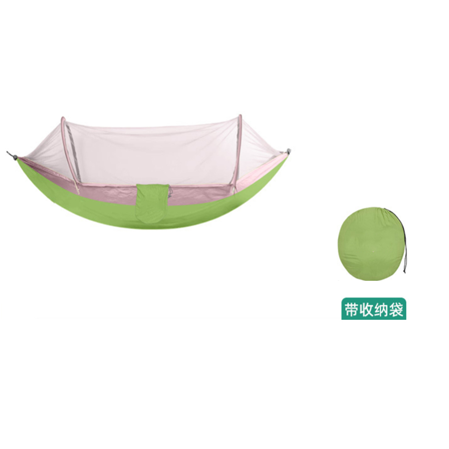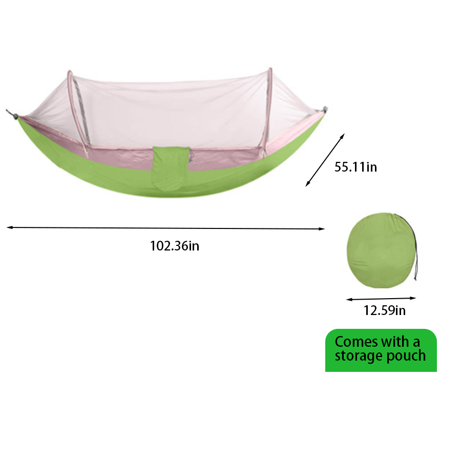 This oversized hammock is specifically engineered for two people, providing extra width and strength for couples or for one person who simply wants more room to stretch out. Constructed from robust, high-density parachute nylon, it supports a substantial weight capacity and resists wear and tear. The fun and high-visibility Apple Green and Pink/Red color scheme is perfect for festivals, glamping, and making a colorful statement at the campsite.Double Hammock with Mosquito Net.