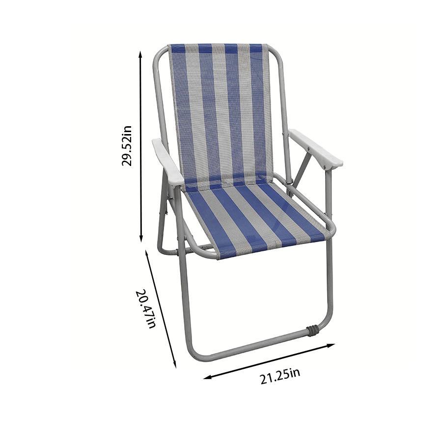 В стуле есть прочная, устойчивая к ржавчине металлическая рама Обеспечивает надежную поддержку и гарантирует долговечность, сезон за сезоном. Сиденье и спинка изготовлены из прочная, всепогодная ткань, демонстрируя стильный и классический узор в сине-белую полоску. Этот высококачественный материал не только водостойкий и устойчивый к ультрафиолетовому излучению Но при этом он обеспечивает отличную циркуляцию воздуха, сохраняя прохладу и комфорт даже в самые жаркие дни. Кроме того, его невероятно легко чистить — достаточно просто протереть влажной тряпкой.